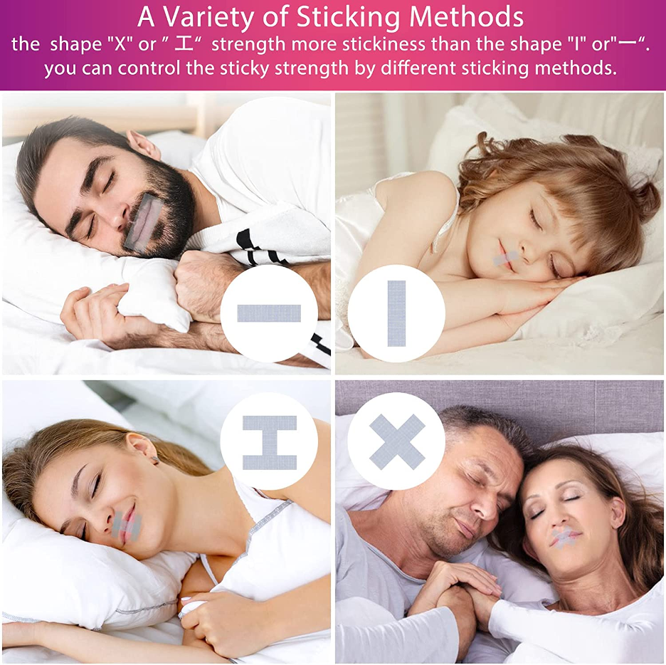 Mouth tape works by sealing the mouth shut, forcing you to breathe through your nose. This helps open up airways, allowing more oxygen into the lungs and helping to reduce snoring and sleep apnea. Additionally, its one of the best solutions for mouth breathers as it can also help reduce mouth drying caused by mouth breathing during sleep.