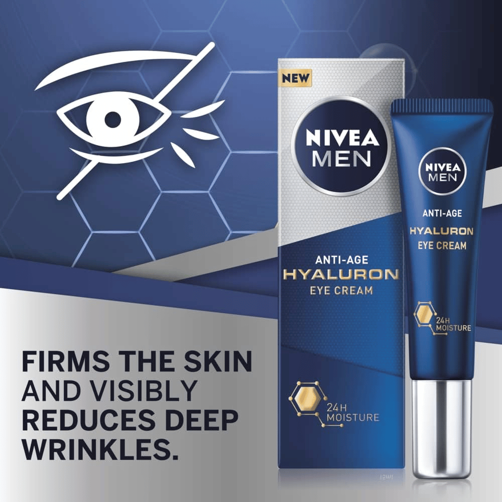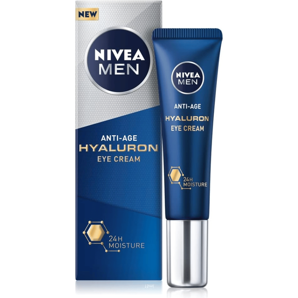 - Perfect for sensitive skin types, NIVEA Men's Hyaluron Eye Cream is specially designed for adult men looking for the best possible protection against aging signs around their eyes. Add it to your daily routine and experience all its benefits: hydrated skin, reduced bags and puffiness, and smooth fine lines – A subtle yet dramatic difference in how young you look!