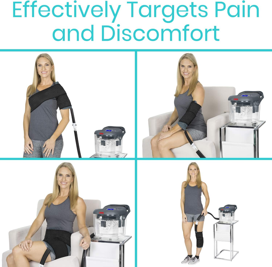 This incredibly powerful therapy machine can offer relief from the pain associated with knee, shoulder, ankle, cervical, back, leg, hip, and ACL injuries. The Vive Cold Therapy Machine features an adjustable ice cryo cuff that offers a flexible cryotherapy freeze kit system for targeted relief.