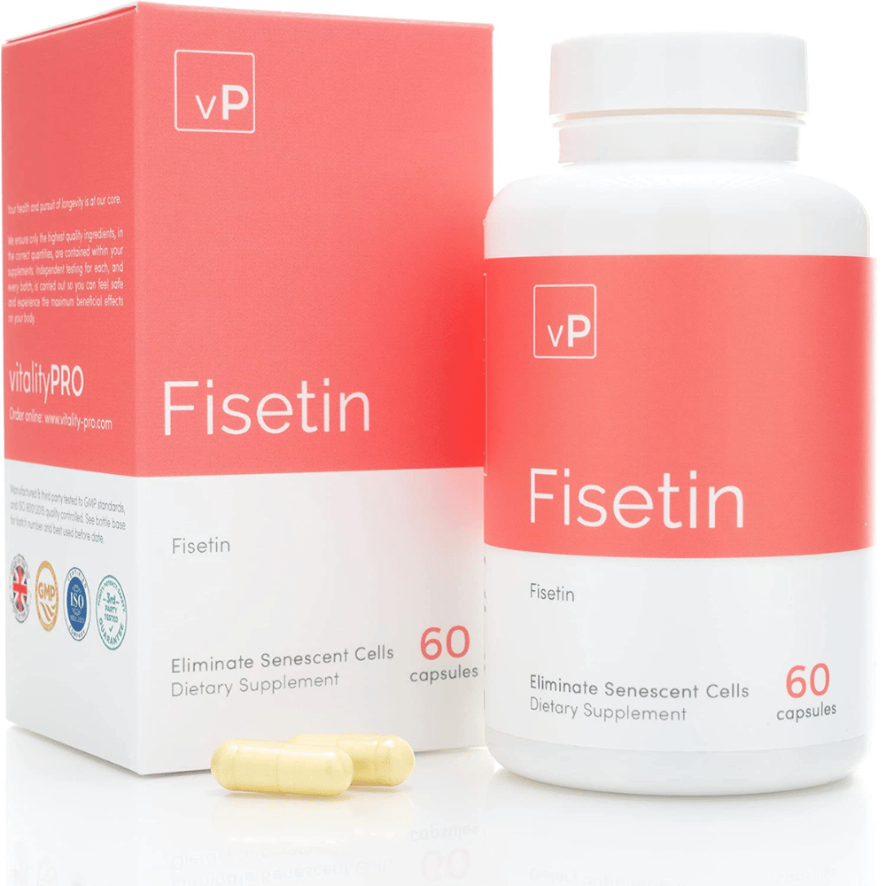 Vitality Pro's natural Fisetin Supplement can help improve your overall health and promote longevity. Get yours today and enjoy peace of mind knowing that these Third Party Tested Over 98% Purity - Natural Fisetin Supplement is what you need. Try it now!