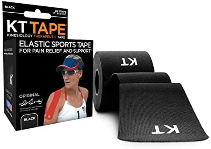 KT Tape is an elastic sports tape designed to provide pain relief and support for muscles, tendons, and ligaments. It helps reduce muscle soreness, supports weakened or overworked joints, and can help speed up the recovery process.