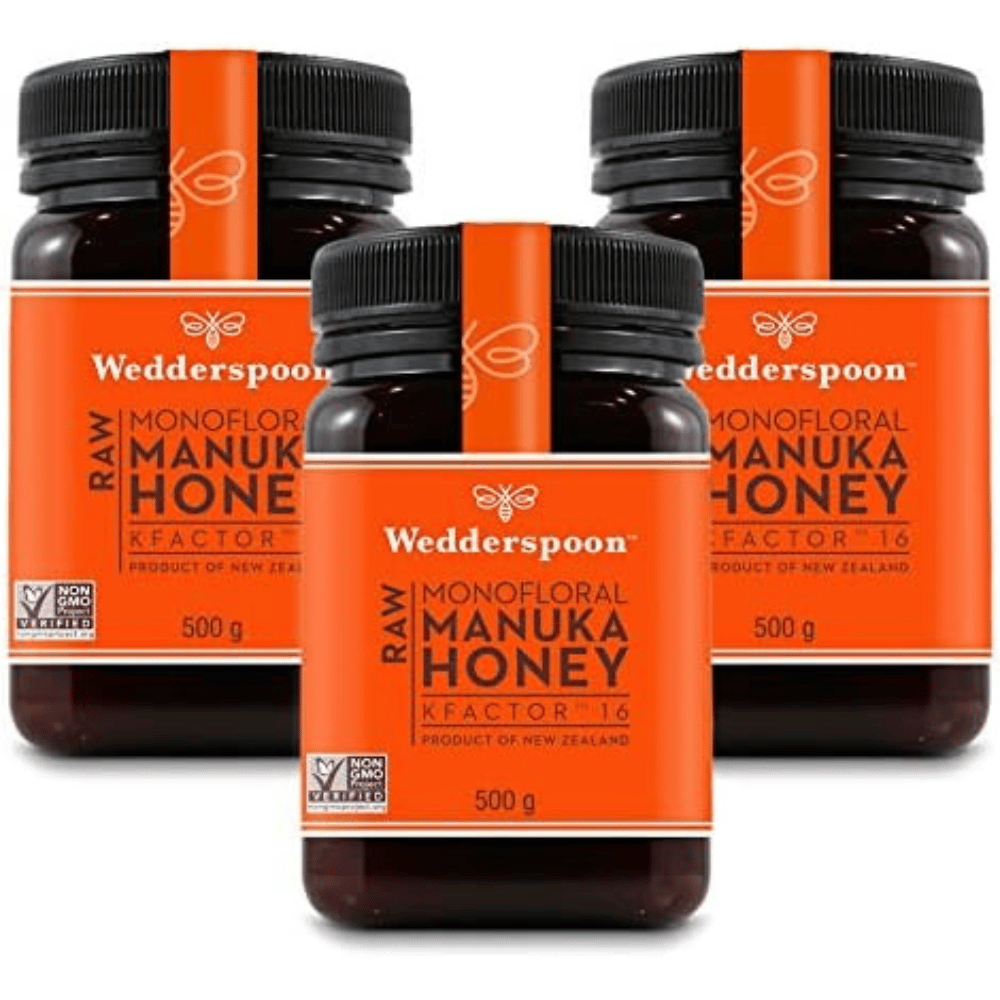 Experience ultimate luxury and wellness with Wedderspoon 100% Raw Kfactor 16 Manuka Honey 500g (Pack of 3)!