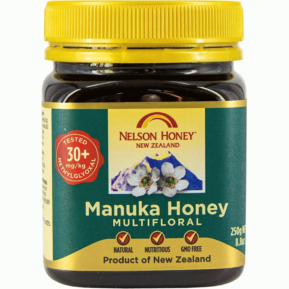 Discover the premium, all-natural goodness of Nelson Honey New Zealand Manuka Honey (30+) 250g. Sourced from pollution-free and unpolluted environments in remote areas of the top of the South Island of New Zealand, this pure honey is free of chemicals and other contaminants, giving you a naturally pure product. What makes it truly special is its 30+ icon which indicates a minimum of 30mg/kg methylglyoxal (MG).
