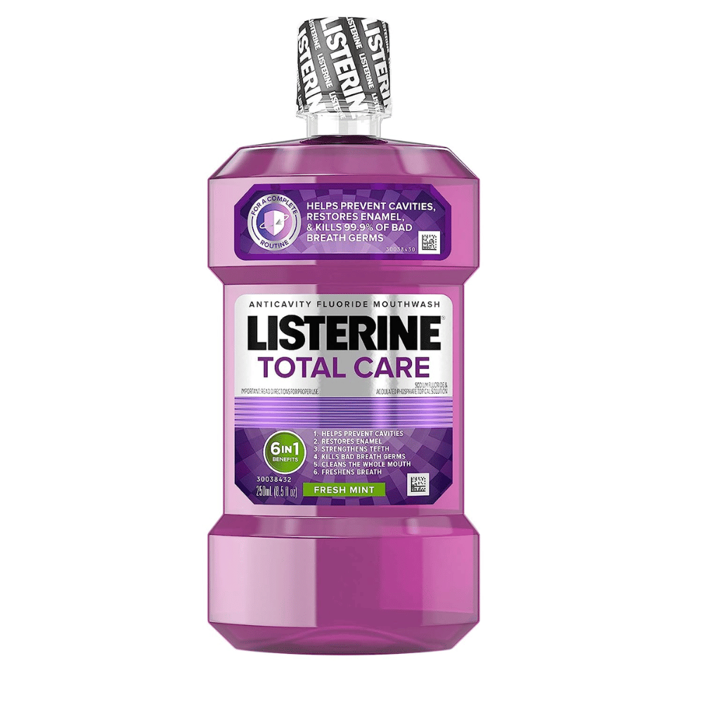 Listerine Total Care Anticavity Mouthwash, 6 Benefit Fluoride Mouthwash for Bad Breath and Enamel Strength, Fresh Mint Flavor, 250 mL