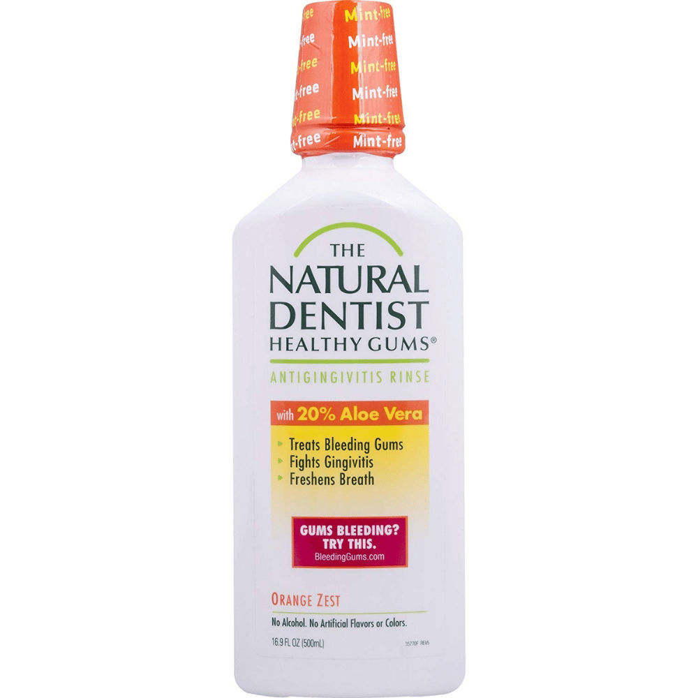 Introducing The Natural Dentist Healthy Gums Antigingivitis Mouthwash, Orange Zest, 16.9 Ounce Bottle - an alcohol-free mouthwash that is perfect for your daily oral hygiene routine and for fighting gingivitis! Formulated with 20% Aloe Vera and orange zest extracts, this all-natural mouthwash helps relieve symptoms of gingivitis such as redness, soreness, and bleeding in the gums. Plus, it’s Vegan friendly!