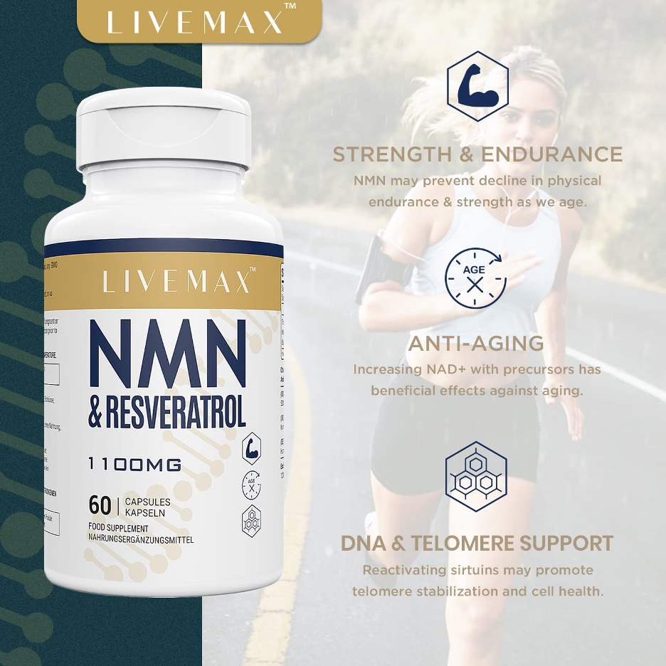 NMN &Trans-Resveratrol 1100mg | Powerful Antioxidant Supplement for Heart Health & Anti-Aging