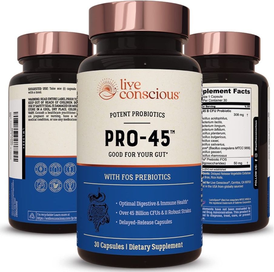 Looking for a postbiotic dietary supplement that helps improve joint mobility, gut digestion, and heart health? Then PRO45 by live conscious is the best choice to make.