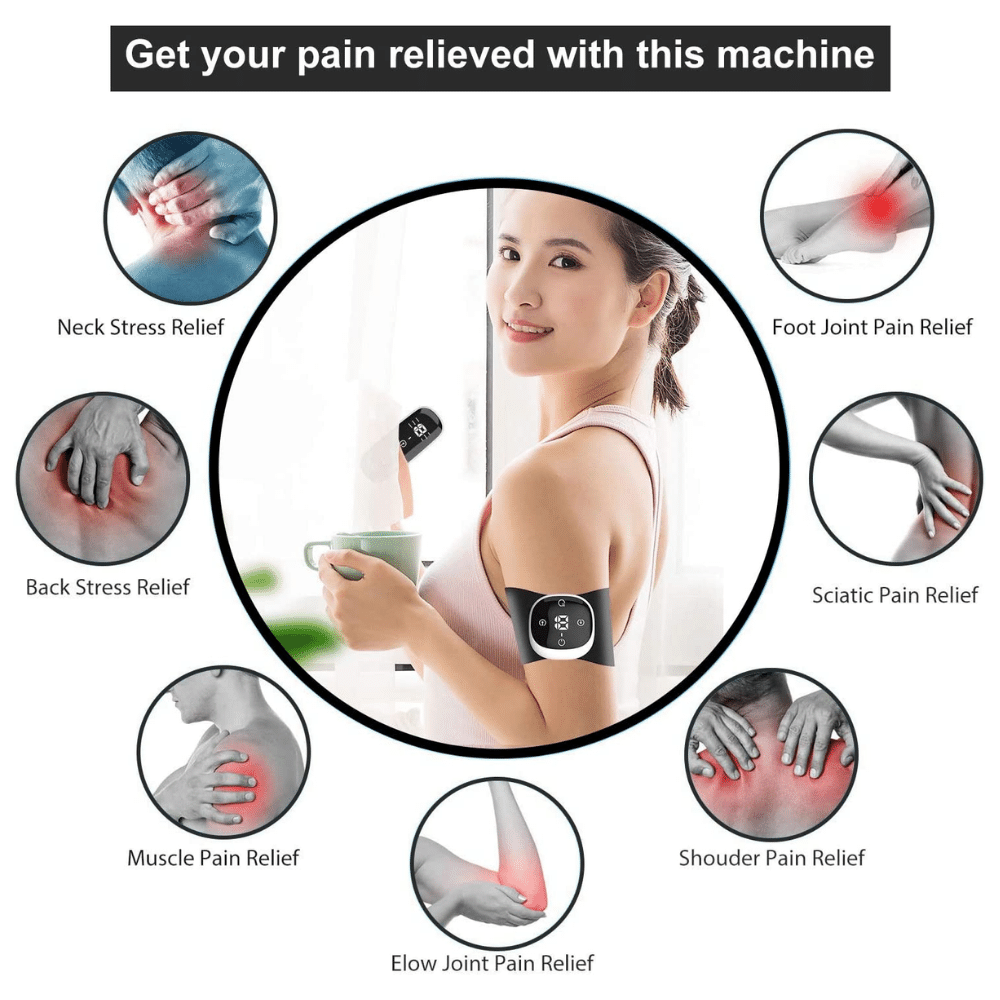 The wireless TENS massager is a portable device that can be used anywhere, anytime to relieve pain.