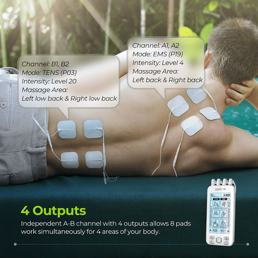 If you're looking for an effective and drug-free way to manage pain, the AUVON 4 Outputs TENS Machine Pain Relief TENS EMS Muscle Stimulator is a great option.