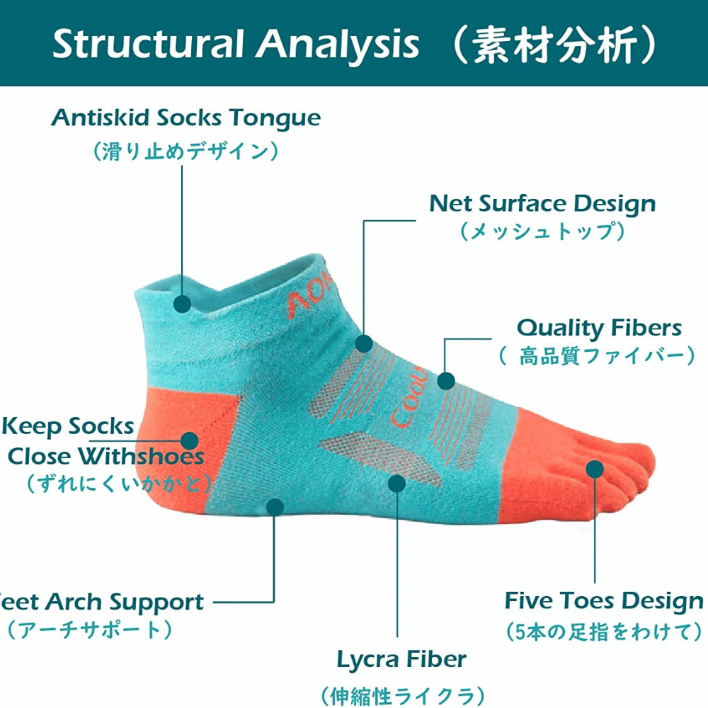 The prime feature of wearing toe socks by Fascot is the mesh-wicking ability. Mesh material socks allow better aeration, absorb and draw away excessive moisture, help prevent odor and fungal infection, make feet cool, and impart many other rich characteristics.