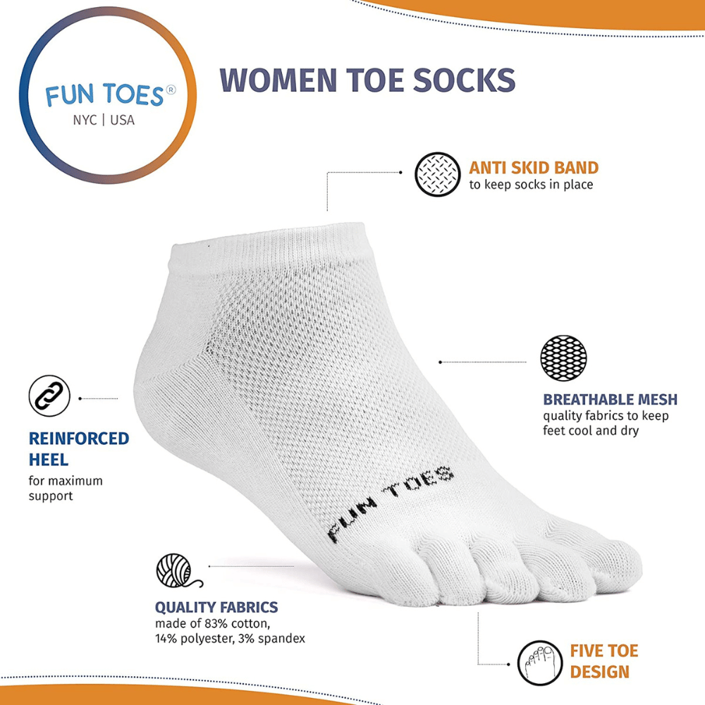 4. FUN TOES Women's Cotton Toe Socks - Extremely Lightweight