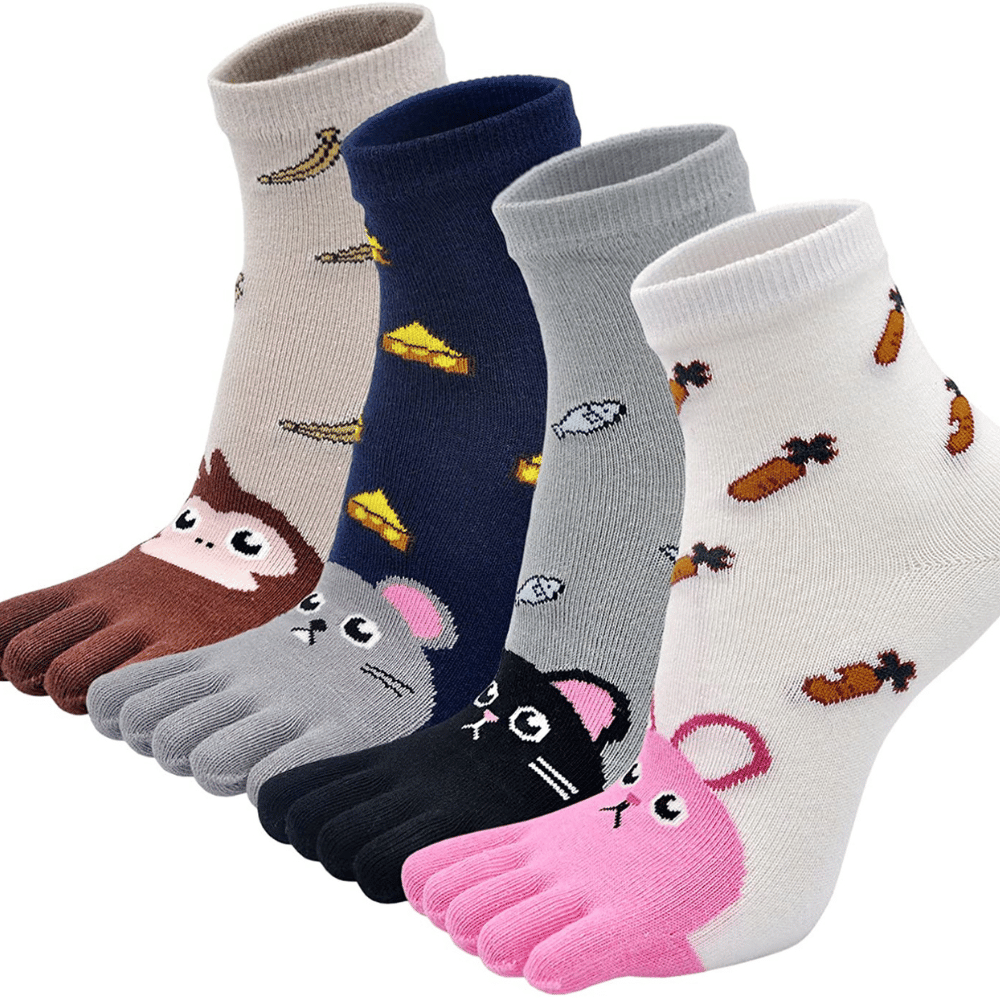 These are split-toe socks with multiple novel designs on them, including cats, dogs, monkeys, fishes, etc., that will have a range of vibrant colors to choose from.