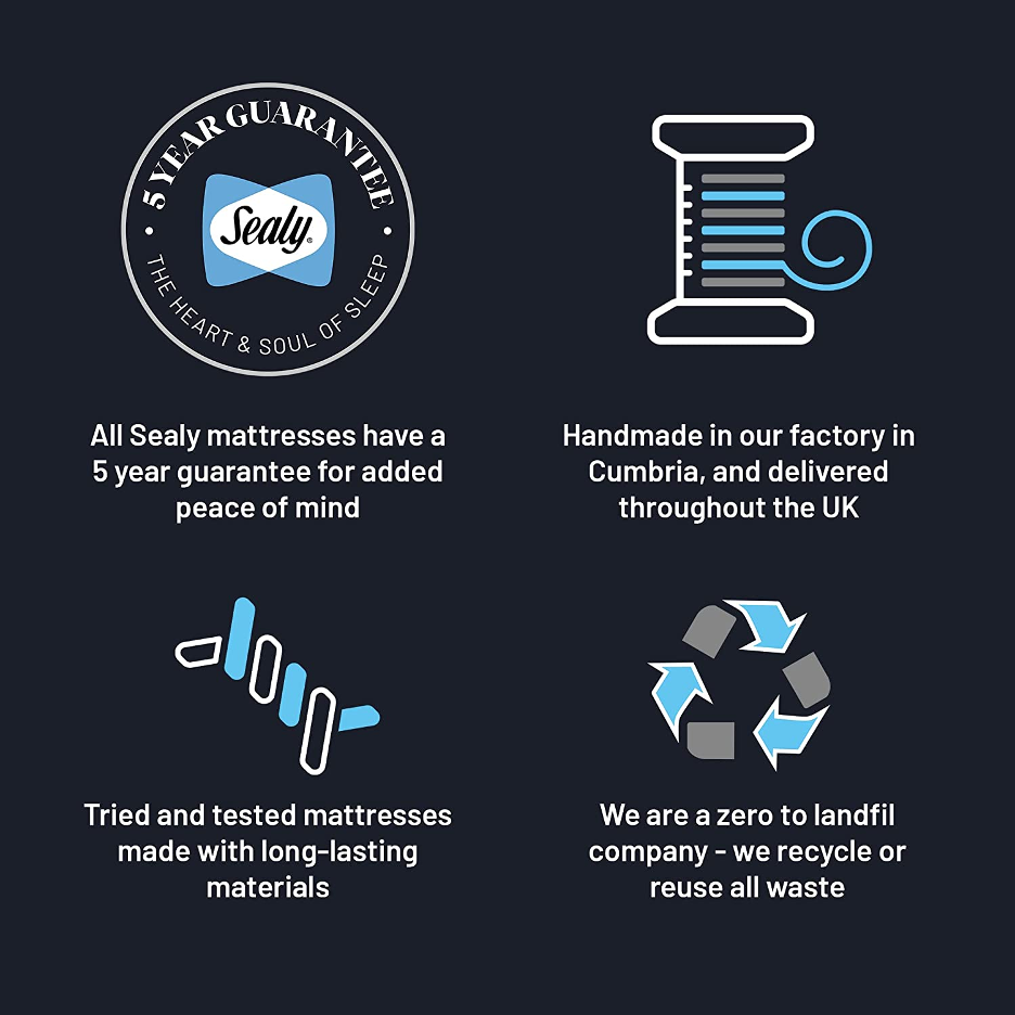 The Sealy Superking Mattress comes coated in a 100 percent recyclable white layer of pure luxury, giving that timeless look and feels synonymous with such high-quality mattresses.