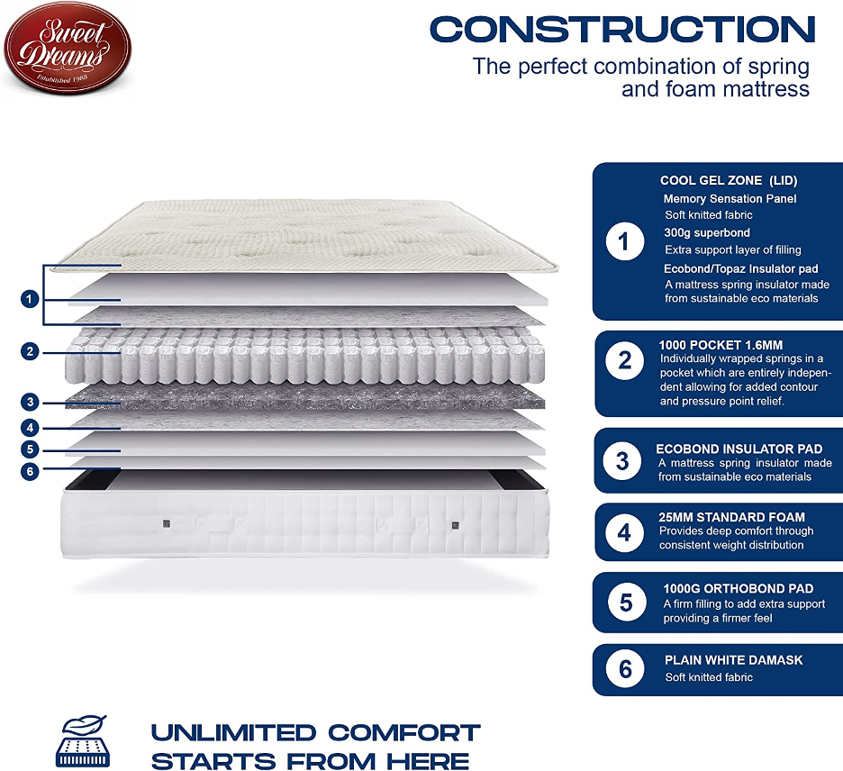 Sweet Dreams (Nelson) Ltd Kempton 1000 Pocket Spring, Hand Tufted Soft Knitted Mattress 8 Layers