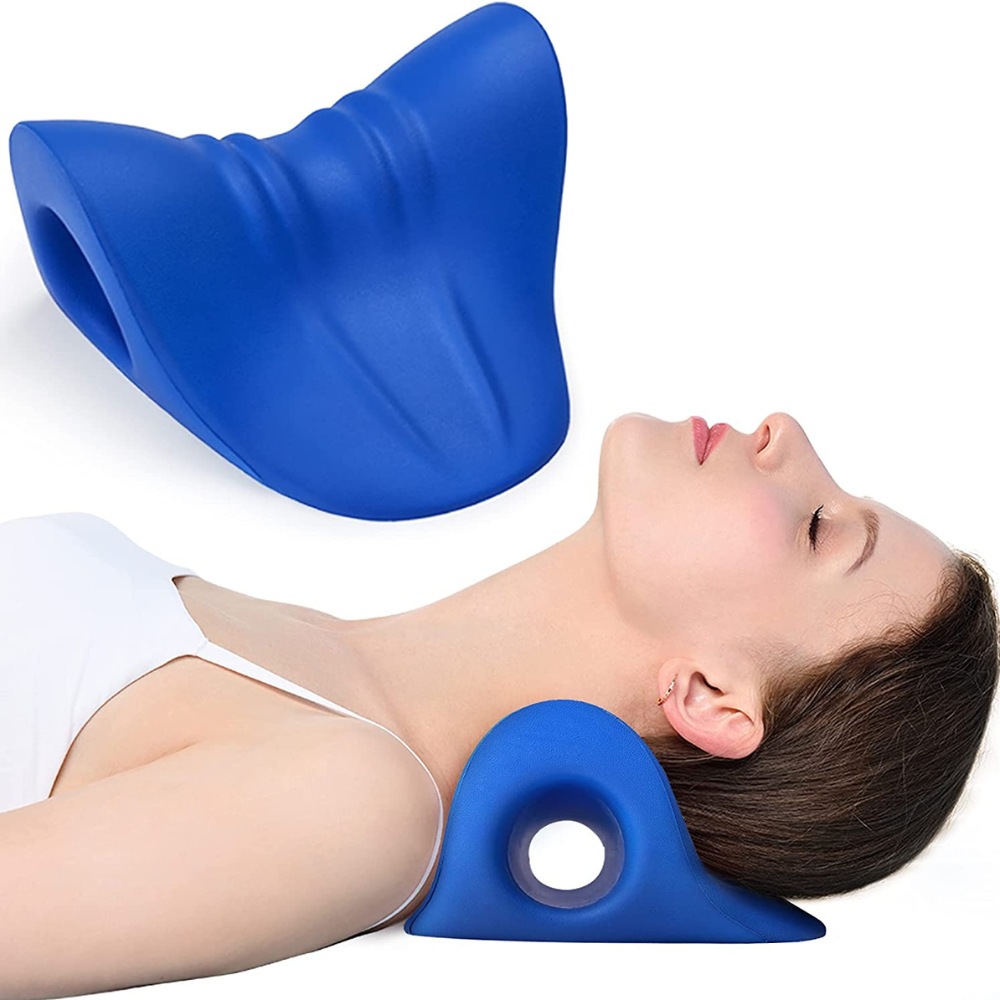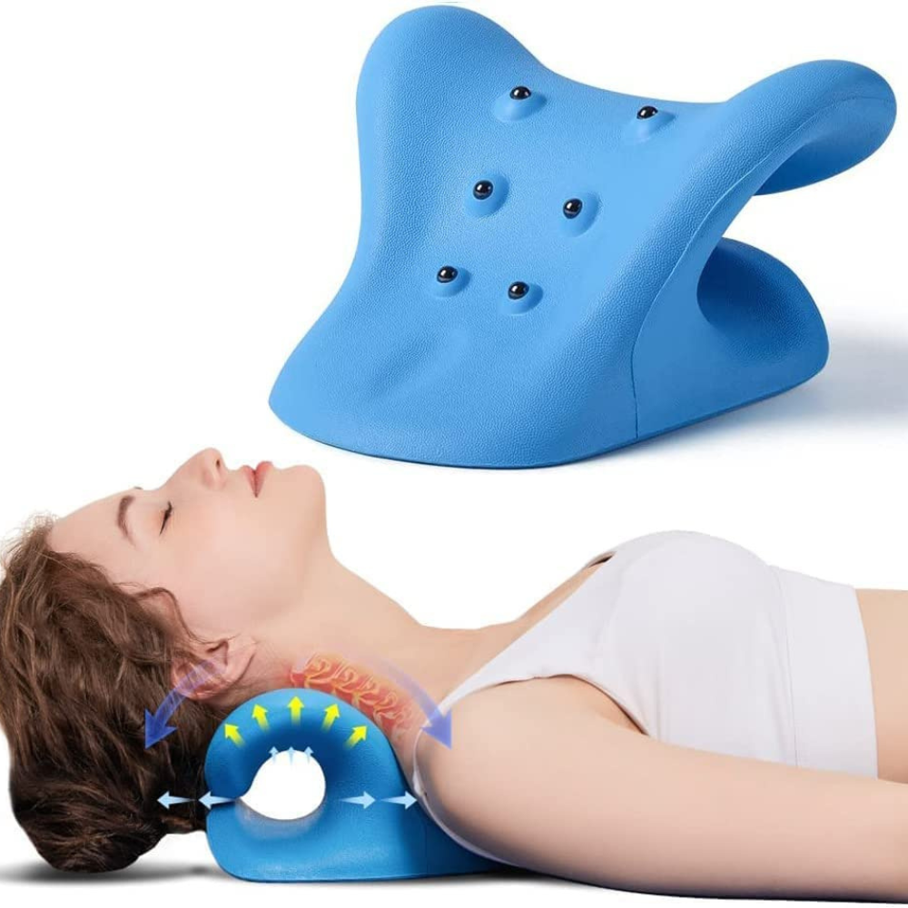 This neck traction pillow seems robust and ideally should be used on hard surfaces but sofas, beds, or yoga carpets can also be used.