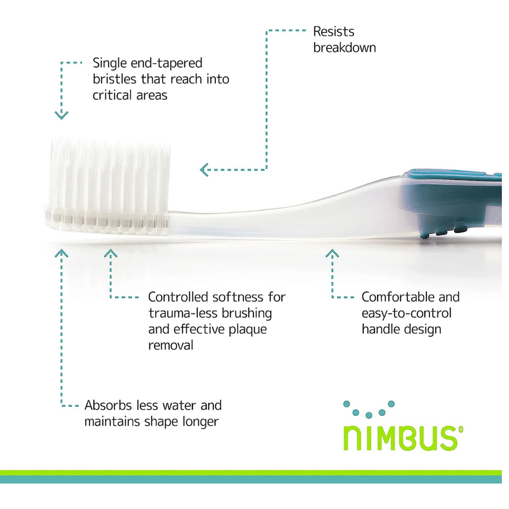 Introducing the next level of gum health: Nimbus Extra Soft Toothbrushes (Regular Size Head), Periodontist Design Tapered Bristles! Whether you are looking for a toothbrush to give your gums extra love, or just a regular ol' plaque remover, these brushes have got you covered. With these individually wrapped brushes, you can travel and stay in charge of your dental hygiene wherever and whenever.