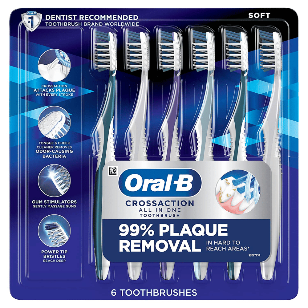 Oral-B Pro CrossAction All In One Soft Toothbrushes, Deep Plaque Removal, 6 Count