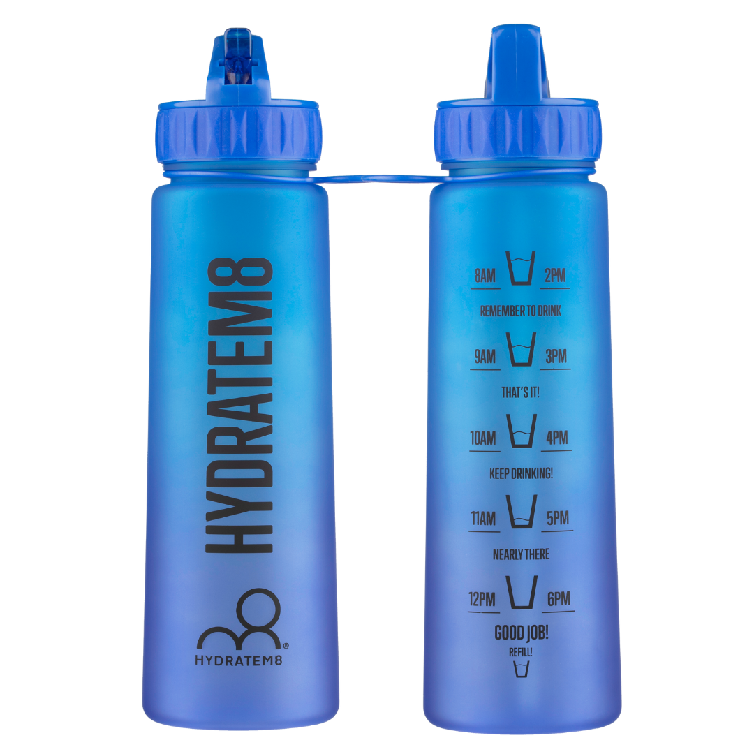 This bottle has a manual spout, a straw for easy sipping, and a carry loop, perfect for on-the-go use. It is the only Hydratem8 in color Royal Blue with the Hydratem.
