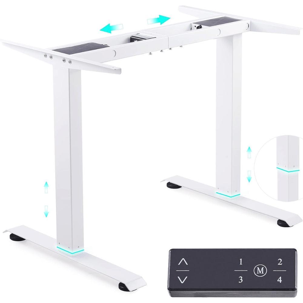 With FEZIBO Dual Motor Height Adjustable Standing Desk Frame, you can easily adjust your working posture with the simple touch of a button. Work in more comfort while standing with a desk that adjusts your writing or keyboard height. Increase your productivity as you get a smooth transition between sitting and standing. Get it today and start turning any desk into a standing desk with the FEZIBO Dual Motor Height Adjustable Standing Desk Frame.