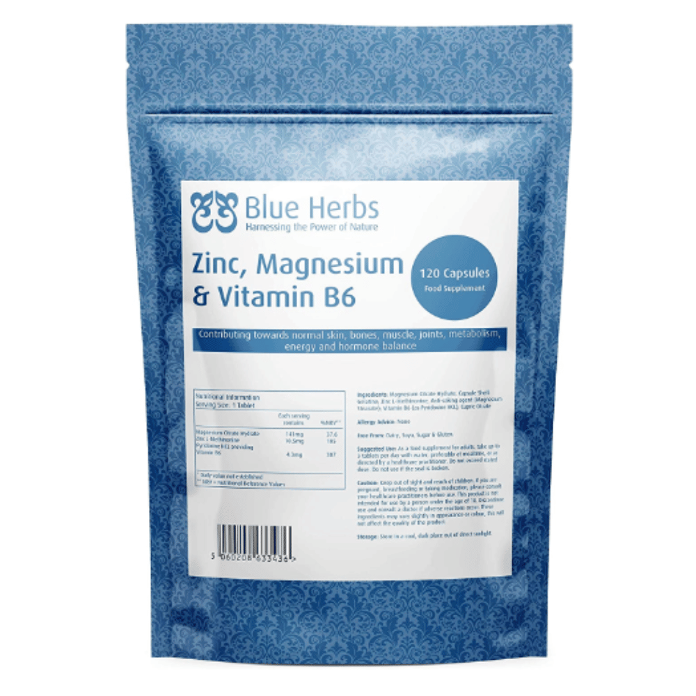 Blue Herbs ZMA, a comprehensive blend of Zinc, Magnesium, and Vitamin B6, is formulated to support your overall health and well-being. The powerful combination of Zinc, Magnesium, and Vitamin B6 helps maintain numerous bodily functions, including muscle and bone strength and the maintenance of healthy hair, skin, and nails.