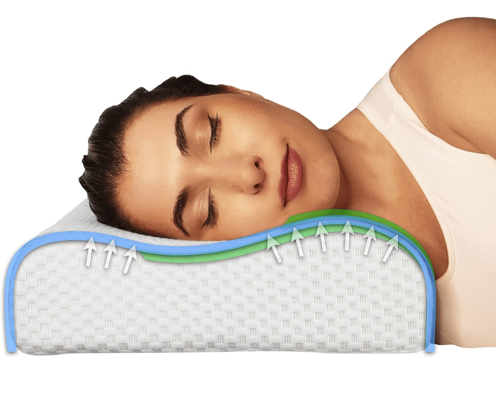 The cervical contour Memory Foam pillow will contour to your neck and head, providing superior support and comfort while alleviating neck and shoulder pain. It will also reduce pressure point discomfort and help you obtain sound and comfortable sleep.